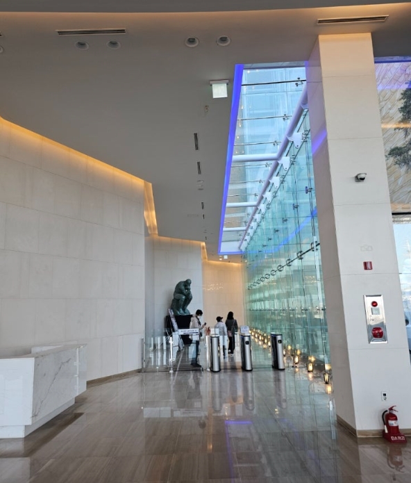 호텔 로비로 들어서자, 넓고 깔끔한 인테리어가 먼저 눈에 들어왔어요.