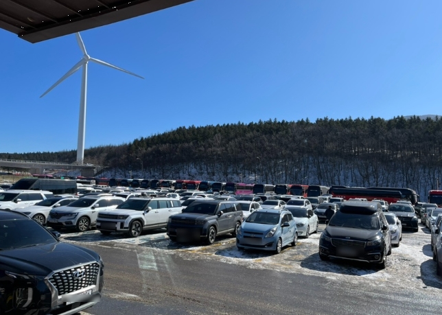 대관령 양떼목장의 주차장은 대관령마을휴게소에 위치하고 있습니다. 주차장이 넓긴 하지만, 주말에는 등산객들도 많이 이용하므로 11시 전에 방문하는 것이 좋습니다.