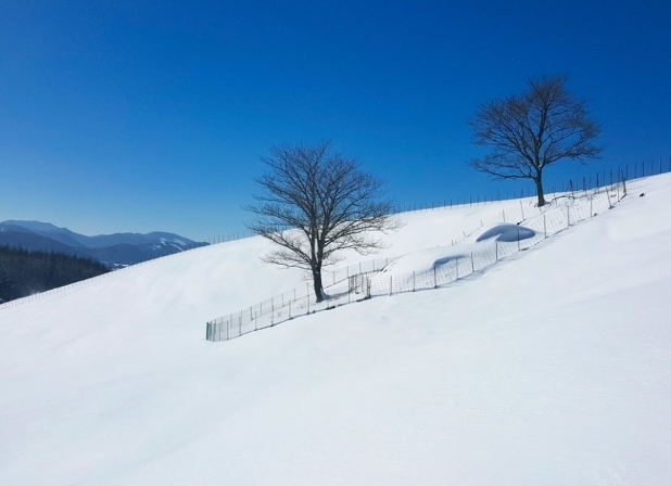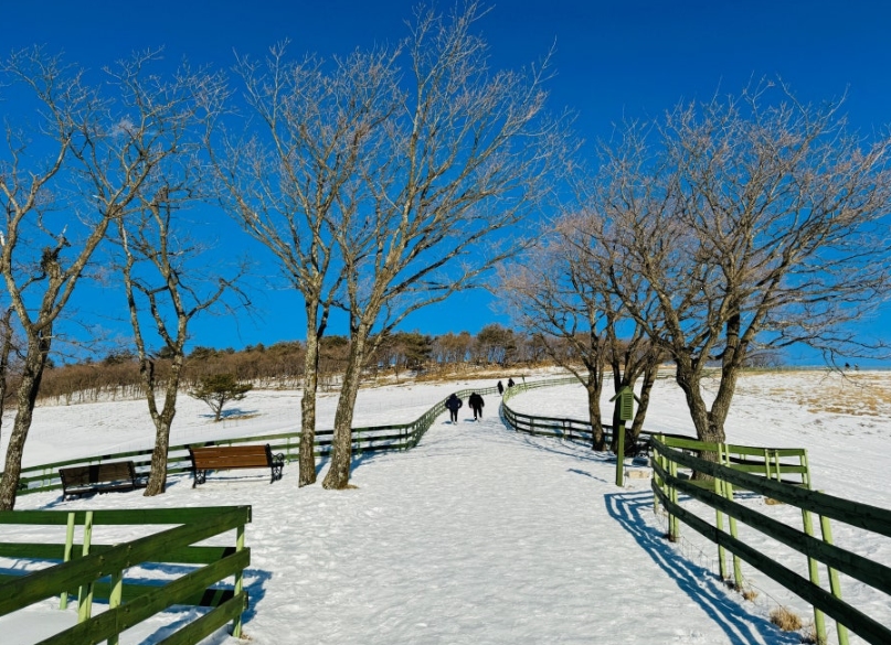 겨울에는 양떼목장이 하얀 눈으로 덮여 마치 동화 속 장면처럼 아름답습니다. 눈 덮인 자작나무 숲길을 걷거나, 움막 포토존에서 사진을 찍으면 겨울의 매력을 만끽할 수 있습니다.