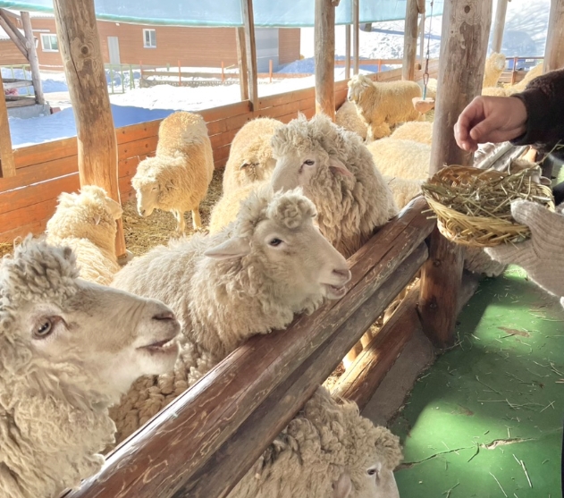 양들이 다가와 건초를 달라는 모습이 너무 귀여웠고, 금세 모든 건초가 사라지는 마법 같은 경험을 할 수 있었습니다.