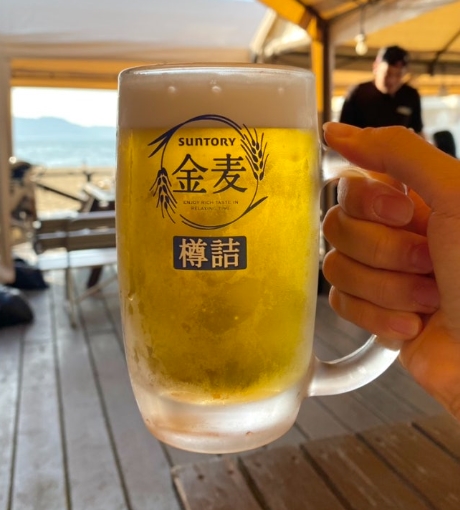 여행 중 맥주를 사랑하는 제 친구는 일본 맥주에 푹 빠졌어요. 모모치 해변의 멋진 바다를 바라보며 맥주 한 잔, 이게 바로 진정한 힐링이 아닐까요?