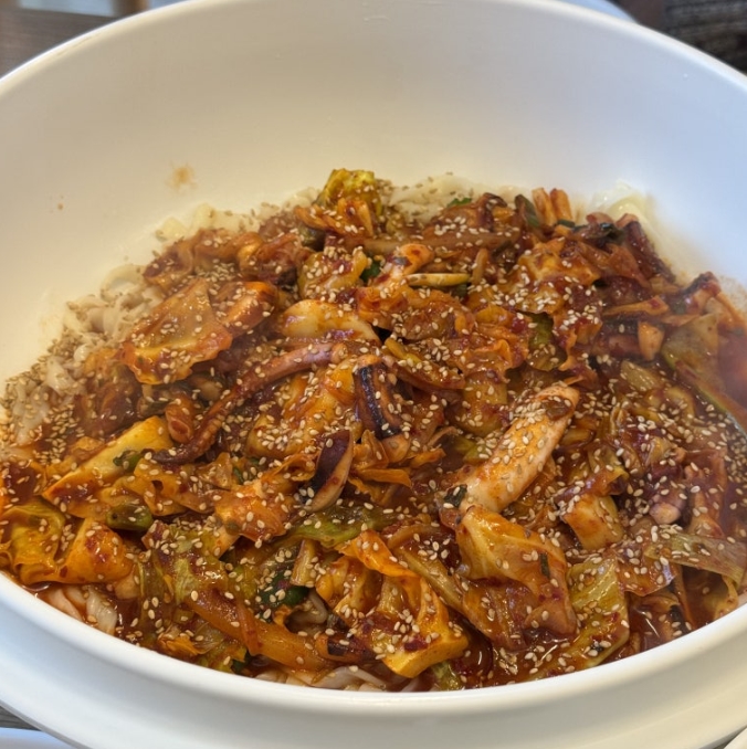 해물이 듬뿍 들어가 있어 한 입 먹을 때마다 새우와 낙지의 신선한 맛이 입안을 가득 채우며 정말 만족스러웠어요. 새우가 진짜 많아서 그 자체로도 훌륭한 맛을 자랑했습니다.
