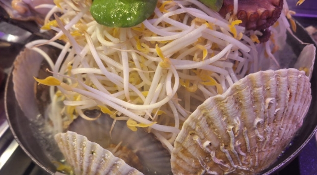 그리고 경포대 조개찜은 정말 푸짐하고 대박 비주얼이었습니다. 크고 신선한 가리비와 키조개가 들어있었고, 문어도 크게 나와 정말 만족스러웠습니다.