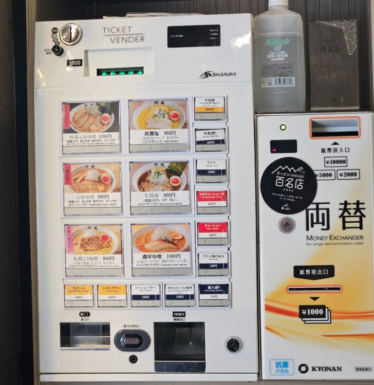 입장하면 바로 기계에서 메뉴를 고르고 결제한 뒤, 나온 영수증을 주방에 전달하면 라멘을 만들어 주는 시스템이에요.