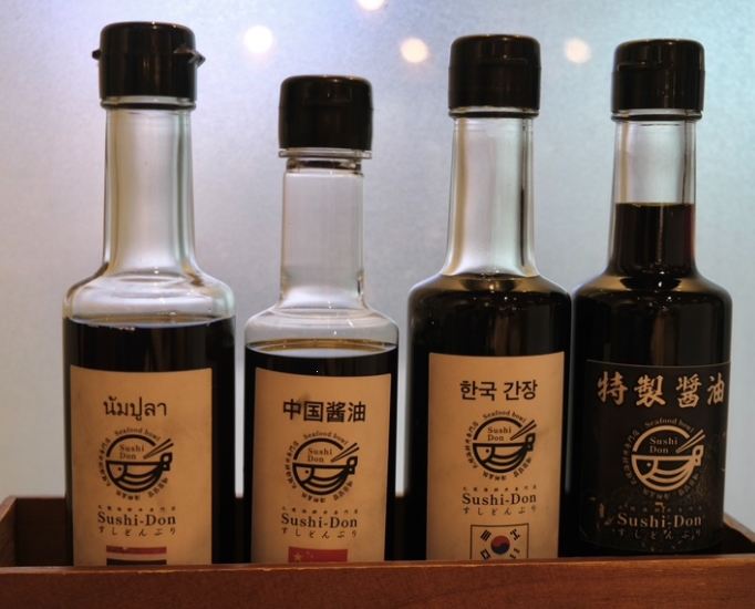 테이블 위에는 중국간장, 한국간장, 일본간장이 구비되어 있었고, 저는 세 가지를 모두 맛보았는데, 중국간장이 제일 진하게 느껴졌습니다.