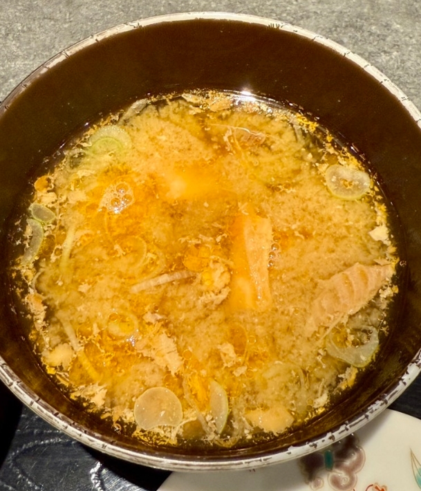 카이센동이 나오기 전, 연어 된장국이 제공되었는데, 연어가 들어가 있어 연어 향이 진하게 나면서 고소한 맛도 느껴졌어요. 일반 된장국과는 또 다른 매력이 있었습니다.