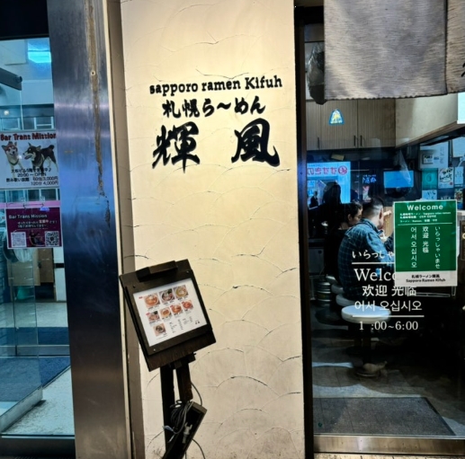이곳은 삿포로 스스키노 번화가에 위치해 있으며, 노란 간판에 "Welcome"이라는 글자가 적혀 있어 멀리서도 눈에 띄었어요. 다 먹고 나올 때 보니 밖에서 웨이팅하는 사람들이 많더라고요. 역시 유명한 곳은 다 이유가 있구나 싶었습니다.