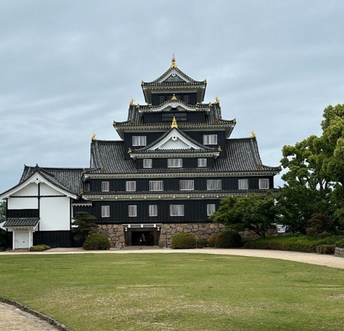 오카야마성은 일본의 유명한 성 중 하나로, 검은색 외벽이 특징인 '까마귀 성'이라는 별명을 가지고 있어요.