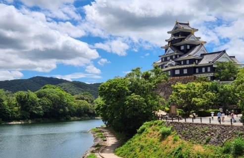 오카야마성은 일본의 유명한 성 중 하나로, 검은색 외벽이 특징인 '까마귀 성'이라는 별명을 가지고 있어요.