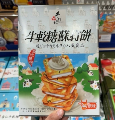 바삭한 크래커 사이에 달콤한 누가가 들어있어서 먹을 때마다 고소하고 달콤한 맛이 퍼져요.