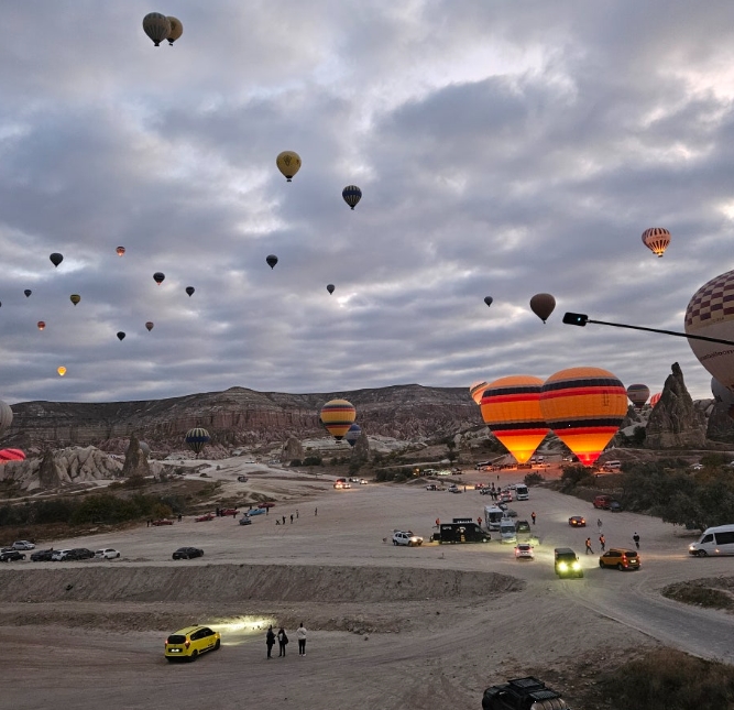 카파도키아 열기구 투어는 새벽에 출발해야 합니다. 해가 뜨기 전부터 이동해야 하기 때문에 밤에 미리 씻고, 아침에는 간단하게 세수와 양치만 하고 준비했어요. 무엇보다 옷을 단단히 챙겨 입는 것이 중요해요. 터키 날씨가 낮에는 덥지만, 새벽에는 쌀쌀하기 때문이죠.