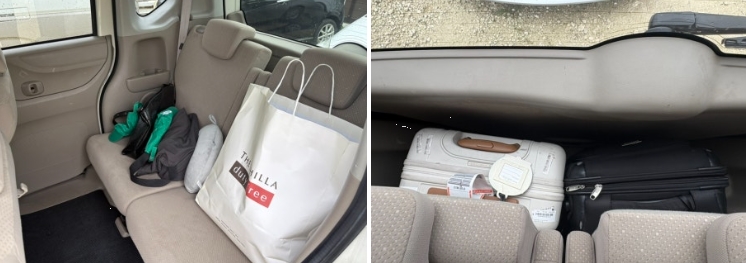 뒷좌석 공간도 충분해서 캐리어 2개도 무리 없이 실을 수 있었어요.