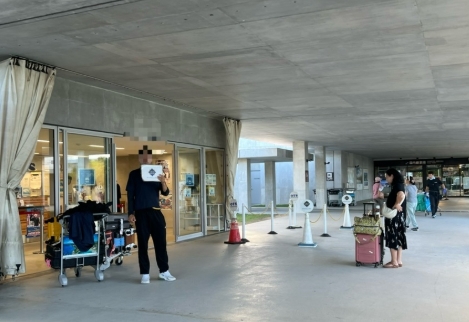서울에서 진에어 직항편을 이용해 시모지시마 공항에 도착했어요. 공항 규모가 작은 편이라 입국 심사부터 짐 찾기까지 정말 빨랐어요. 비행기에서 내려 공항 밖으로 나오기까지 15분 정도밖에 걸리지 않았어요.