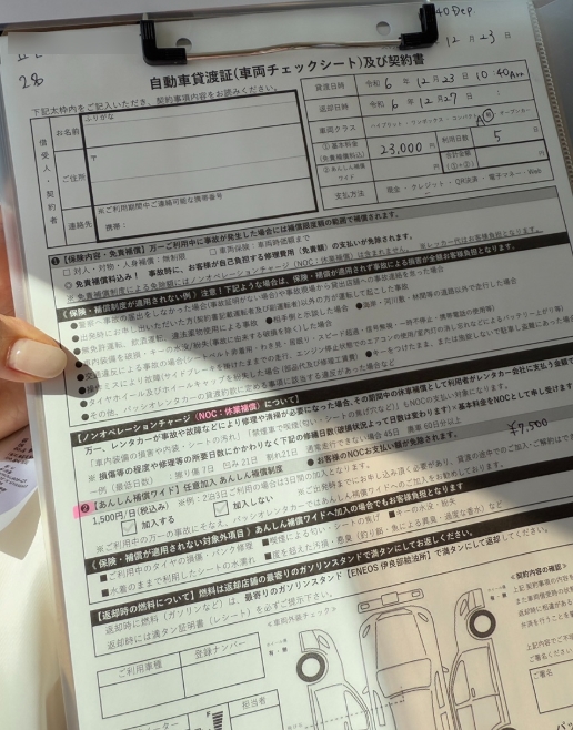 1일 ¥6,500부터 시작하는 요금으로, 미야코지마의 다른 렌트카 업체에 비해 가격이 저렴한 편이었어요. 저는 5박 6일 동안 풀보험을 포함해 약 43,500엔을 지불했는데, 다른 업체들과 비교해도 꽤 괜찮은 가격이었어요.