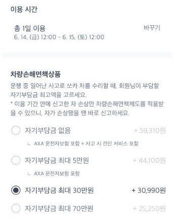 쏘카는 사고를 대비하여 보험 가입이 필수입니다.