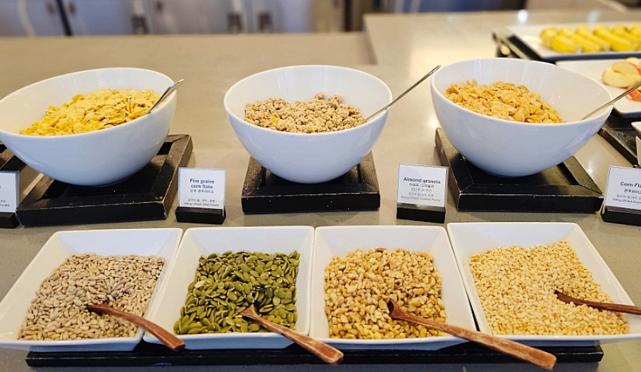 개인적으로 시리얼 & 요거트 코너가 가장 마음에 들었습니다. 다양한 토핑 덕분에 플레인 요거트도 질리지 않게 즐길 수 있었어요.