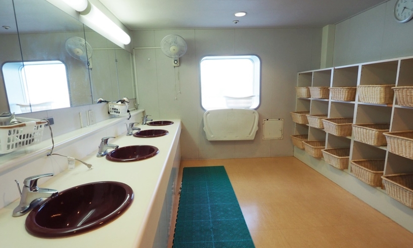 장거리 이동을 하다 보면 씻을 공간이 필요하죠? 뉴카멜리아호에는 공용 샤워실이 준비되어 있어 깔끔하게 씻을 수 있었어요.