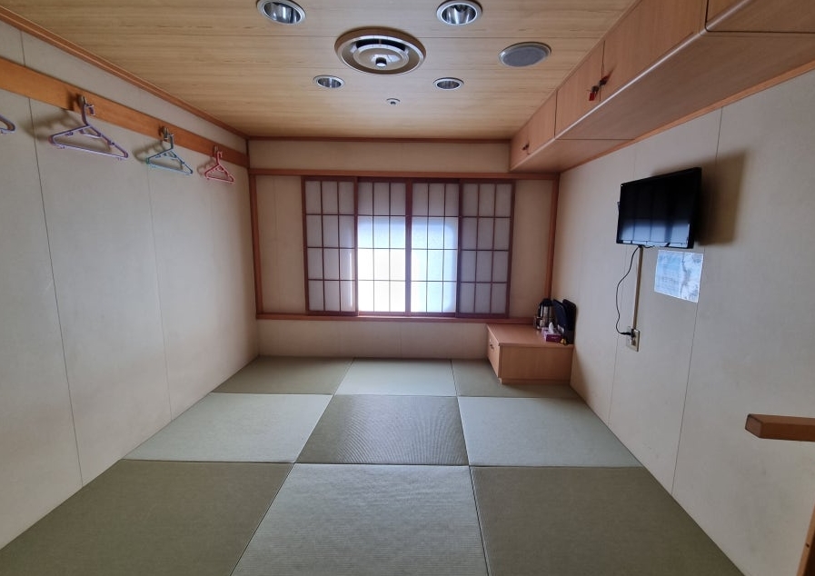 2등실은 다다미방 형식으로 여러 명이 함께 사용하는 공간이라 조용한 숙박을 원하면 1등실 이상을 추천합니다.