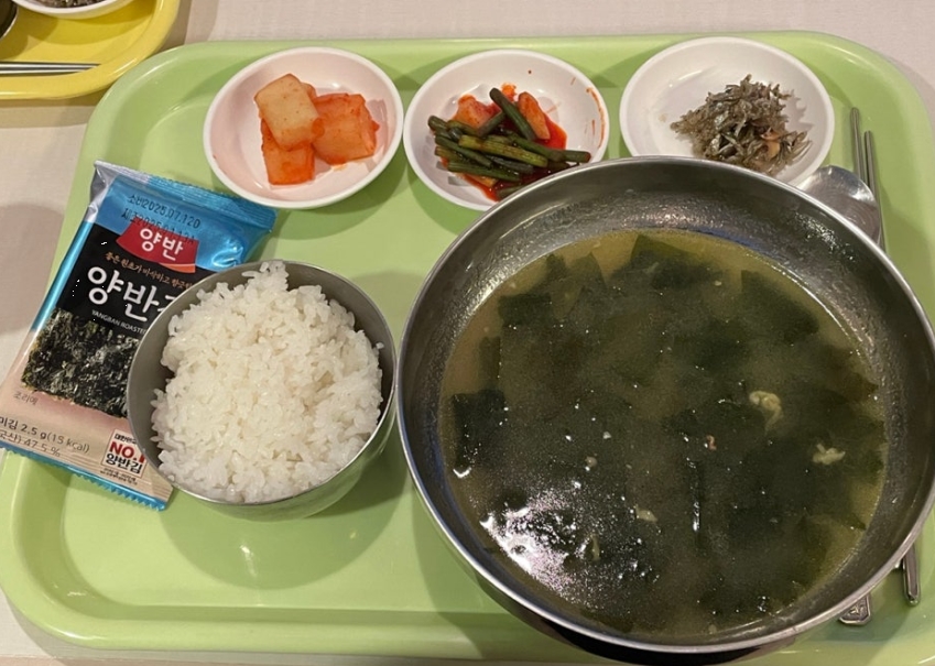 식당은 아침 6시 30분~7시 30분까지 운영되며, 미역국 정식은 생각보다 든든해요.