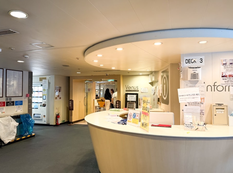 뉴카멜리아호는 부산과 후쿠오카를 연결하는 국제 여객선으로, 밤에 출발해 아침에 도착하는 구조라서 선상에서 하룻밤을 보내게 됩니다.