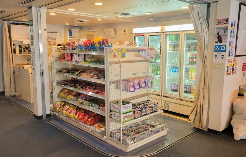 매점 판매 품목: 컵라면, 과자, 맥주, 소주, 막걸리 등 (일본 엔화 결제만 가능)
