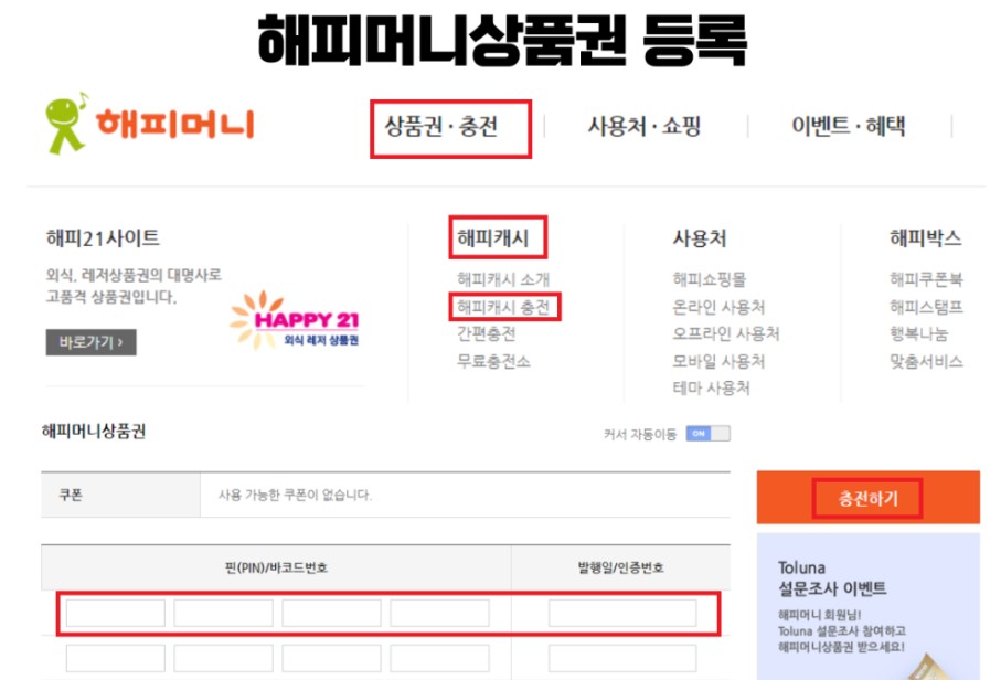2. 해피캐시 충전