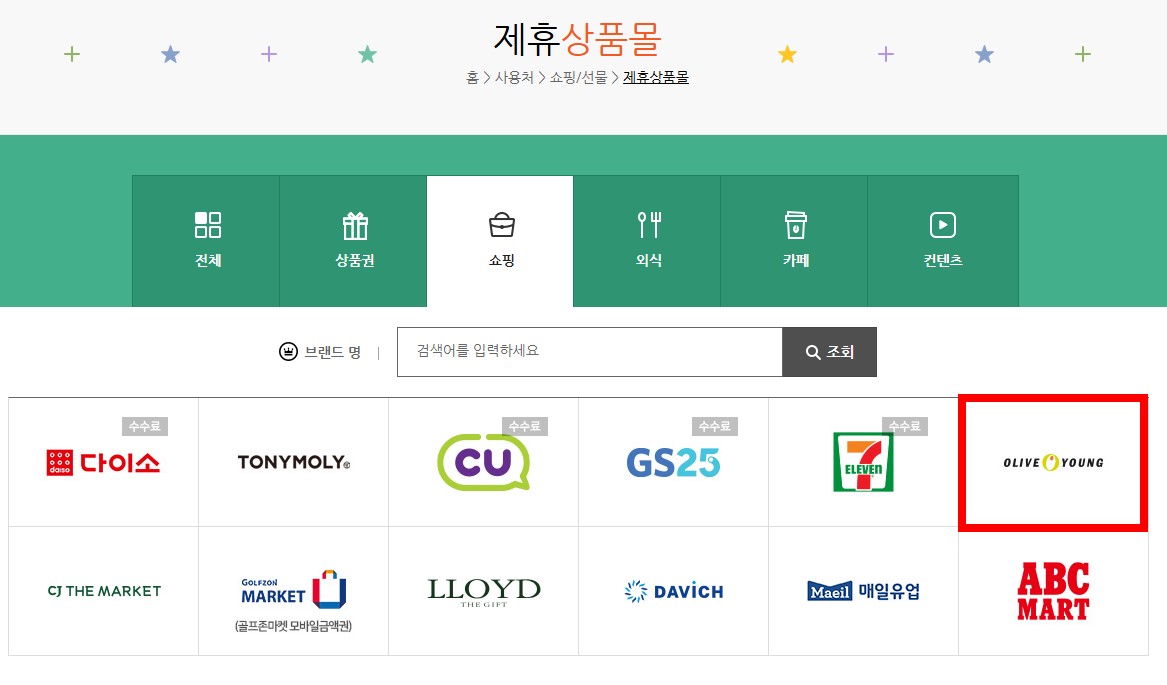 [제휴상품몰]에서 [올리브영]을 클릭합니다.