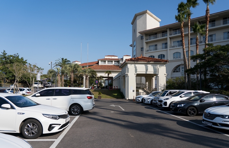 드디어 숙소에 도착하자, 널찍한 주차장과 함께 깔끔하게 정돈된 건물이 눈에 들어왔어요. 주차 공간이 넉넉해서 별다른 불편 없이 바로 차를 세울 수 있었습니다.