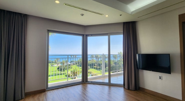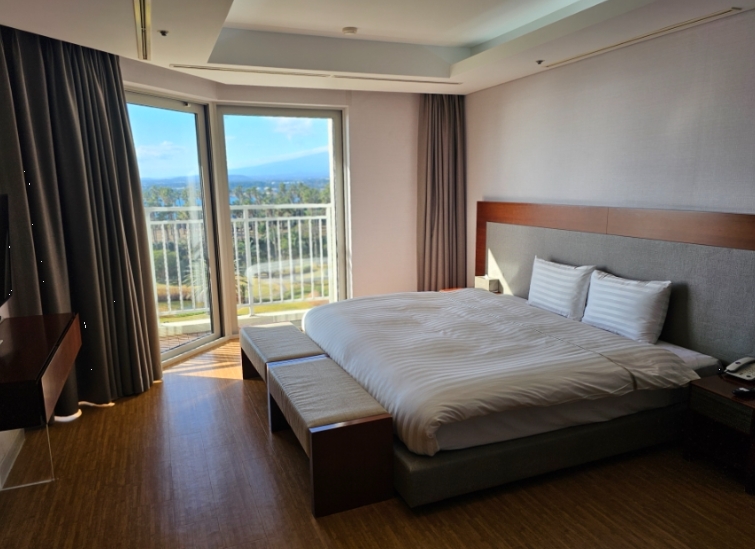 객실 문을 열고 들어서자마자 따뜻하고 편안한 분위기가 느껴졌습니다. 제가 선택한 객실은 스위트 프리미어 취사 가든 오션뷰로, 넓은 창을 통해 아름다운 바다 전망이 펼쳐졌어요.