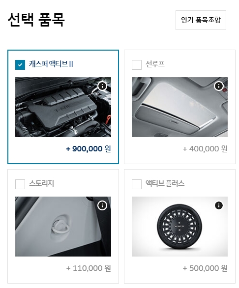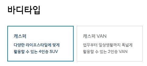 저는 4인승 일반 캐스퍼를 선택했어요.