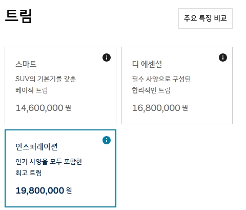 트림별 가격 차이