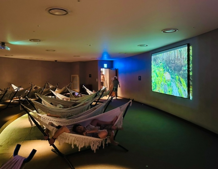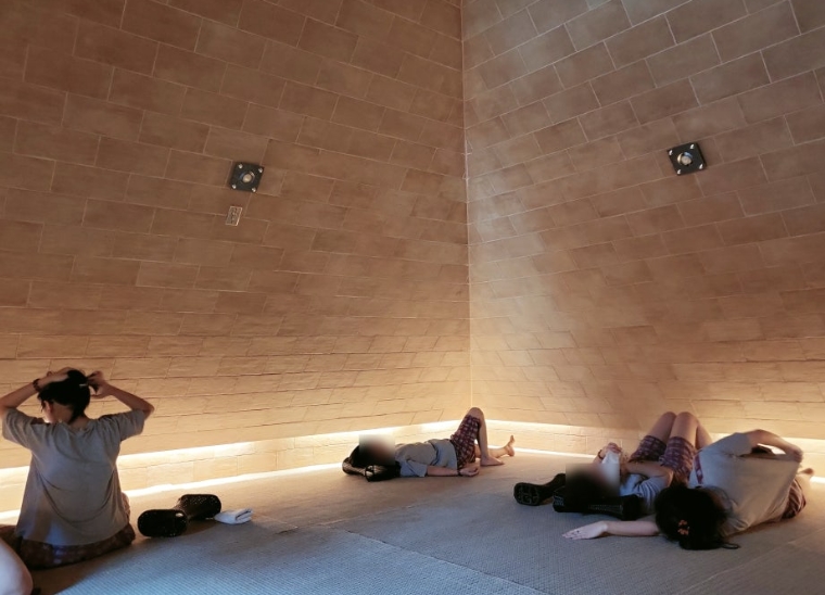 이곳은 은은한 음악이 흐르는 공간으로, 잔잔한 분위기에서 몸과 마음을 힐링할 수 있었습니다. 소리가 벽을 통해 울려 퍼지는 구조로 되어 있어서 몸 전체가 음악에 감싸이는 듯한 느낌을 받을 수 있었어요.