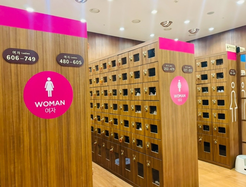 남녀 구분된 락커룸에서 개인 락커를 배정받고, 옷을 갈아입습니다.