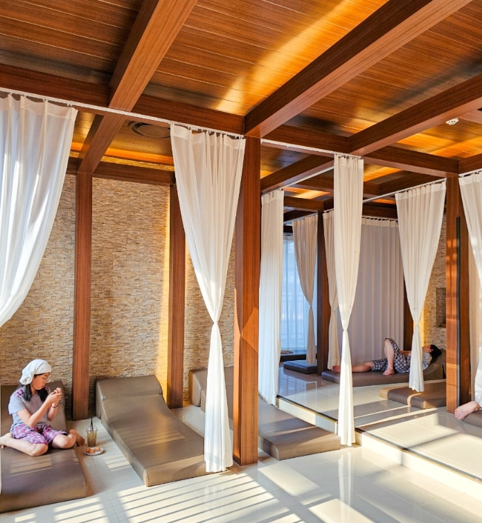 개인적인 휴식을 취하기 좋은 공간으로, 커튼이 쳐져 있어 다른 사람들의 시선을 신경 쓰지 않고 프라이빗하게 쉴 수 있는 곳이었습니다. 조용히 낮잠을 즐기거나 책을 읽기에도 적합한 장소였어요.