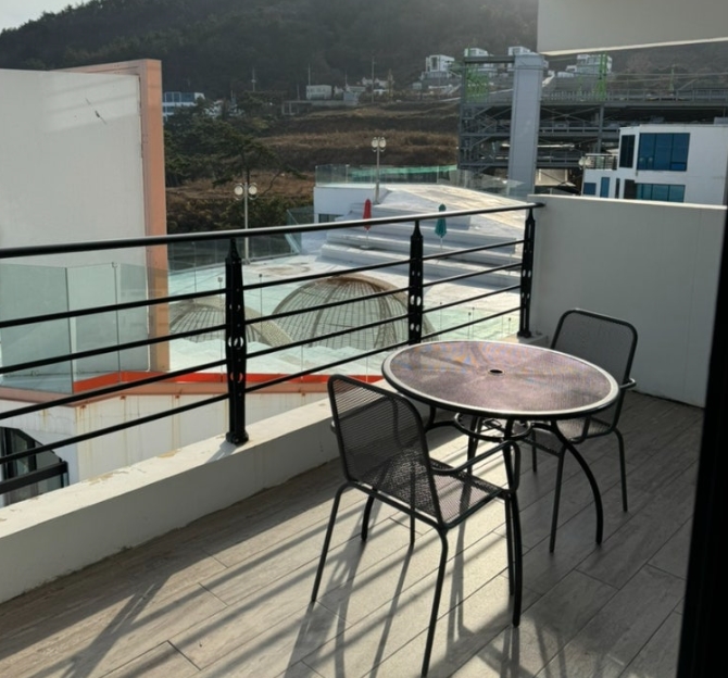 개별 테라스가 있어 바다를 감상하며 여유로운 시간을 보낼 수 있었습니다.
