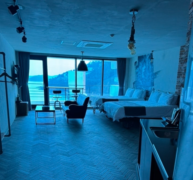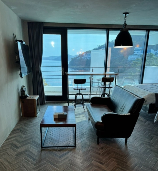 창문을 열면 바로 탁 트인 바다가 펼쳐지는데, 이 전망 하나만으로도 숙박비가 아깝지 않다고 느껴질 정도였습니다. 마치 바다 한가운데 떠 있는 듯한 기분이 들었습니다.