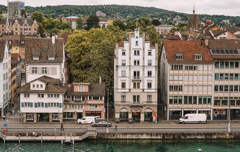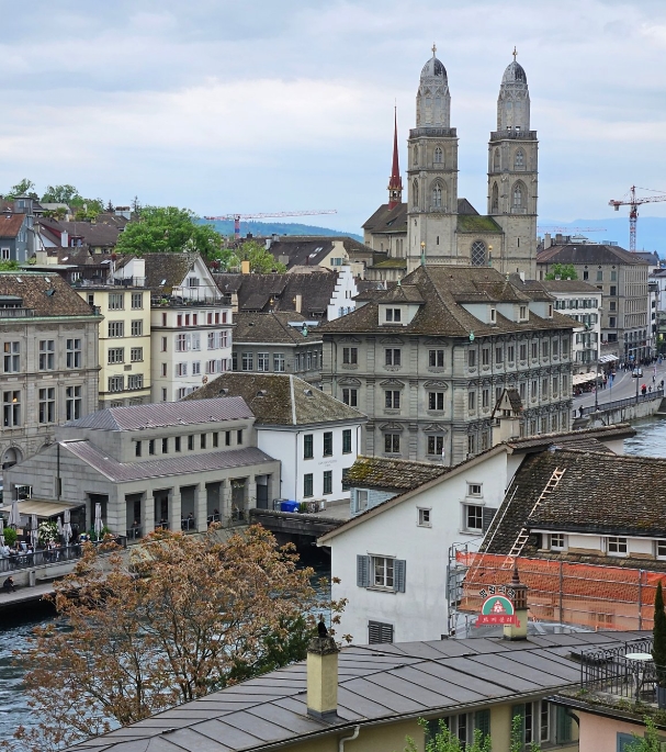 취리히의 상징적인 두 성당, 그로스뮌스터와 프라우뮌스터는 리마트강을 사이에 두고 서로 마주보고 있어요. 도보로 3분 거리라 한 번에 둘러보기에 아주 좋죠.