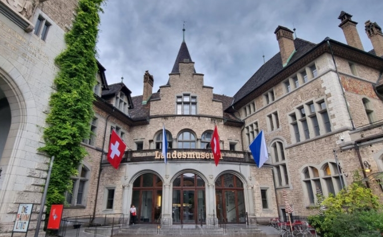 중앙역에서 도보로 3분, 리마트 강변에 자리한 고풍스러운 외관의 박물관이 바로 스위스 국립박물관이에요.