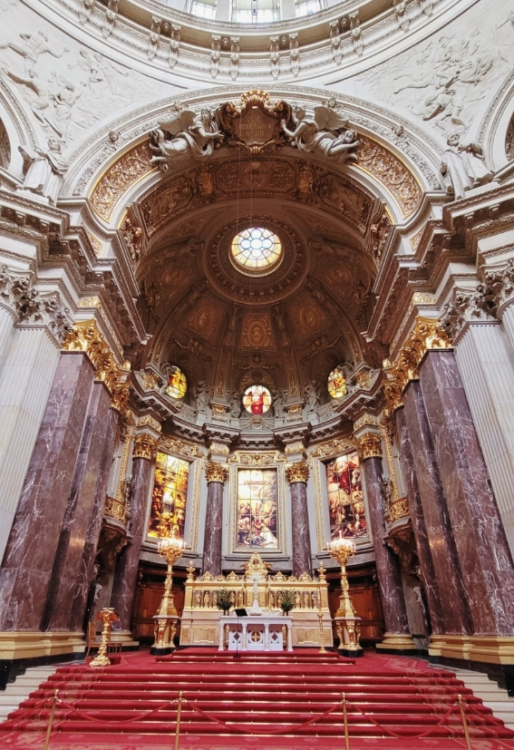 다음으로 방문한 곳은 베를린 대성당인 베를린 돔입니다. 웅장한 돔 구조와 외벽 조각들이 멀리서부터 시선을 사로잡았어요.
