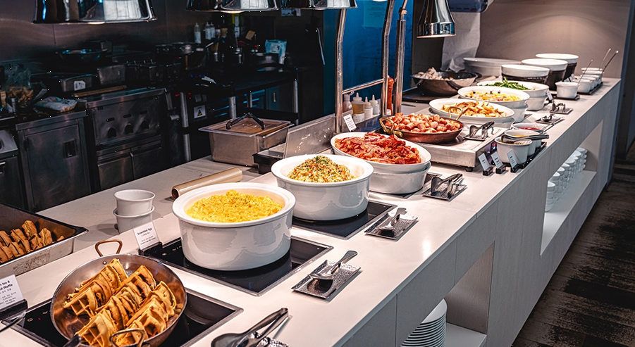 뷔페 형식으로 운영되며, 메뉴는 한식, 양식, 샐러드류 등 다양하게 구성되어 있었습니다.
