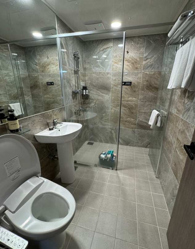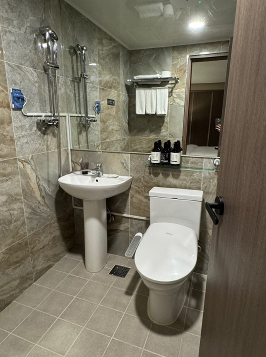 반려견과 여행을 오면 청결 관리에 더 신경 쓰게 되는데, 펫베른 객실의 욕실은 청소 상태가 아주 뛰어났고, 기본 어메니티도 넉넉하게 갖춰져 있어 만족스러웠어요.