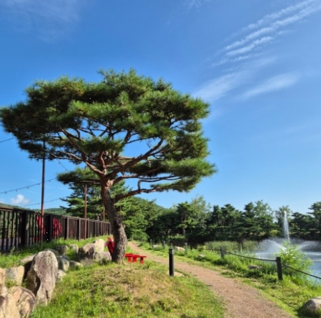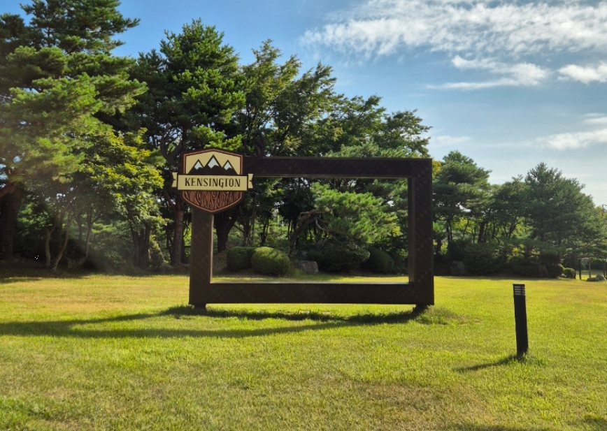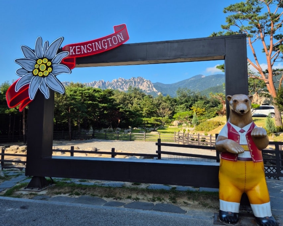 리조트 내에는 곳곳에 멋진 포토존과 전망 포인트가 마련되어 있어요. 특히 봄빛 가득한 숲과 울산바위를 배경으로 사진을 찍을 수 있는 액자뷰 포인트는 반려견과 함께 인증샷을 남기기에 정말 완벽했어요.
