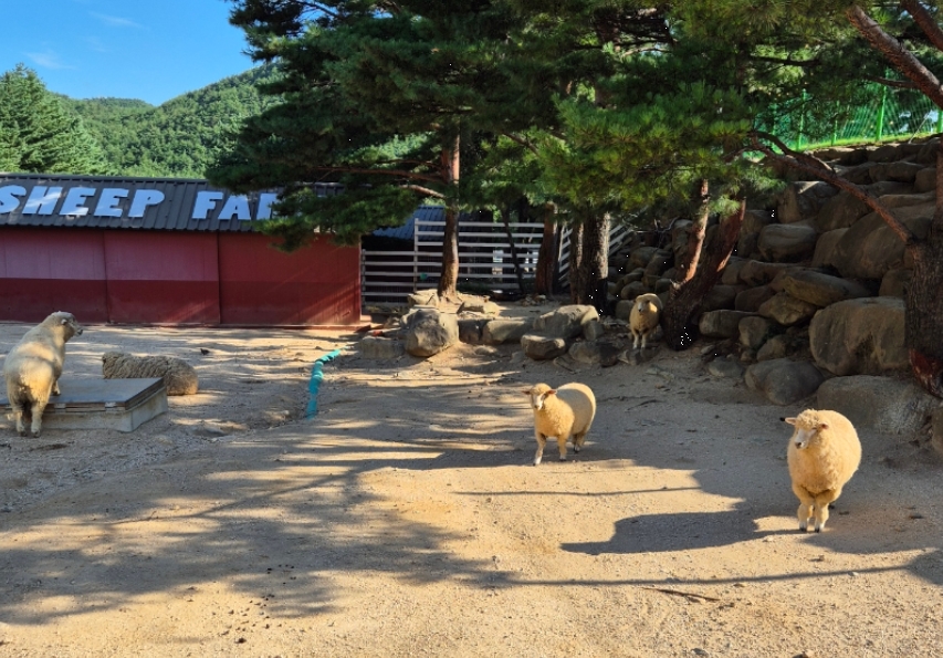 산책 중에는 양과 사슴 같은 동물 친구들도 만날 수 있었어요. 울타리가 잘 마련되어 있어 반려견이 놀라지 않도록 거리도 적당했고, 아이나 반려견 모두가 자연 속에서 교감할 수 있는 소중한 시간이었습니다.