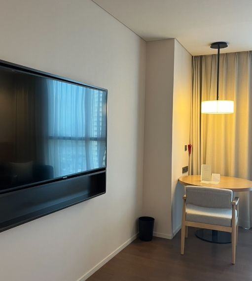 객실에 들어선 순간 느껴졌던 첫인상은 '깔끔함'이었습니다. 전체적으로 모던한 인테리어와 함께 밝고 정돈된 분위기가 인상적이었어요.