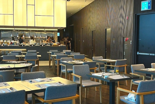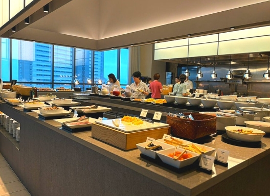 아침 식사는 7층에 위치한 레스토랑에서 제공되는데, 뷔페 형식으로 운영되고 있었어요. 조식 메뉴는 꽤 다양했는데, 제가 가장 좋았던 건 와플과 오믈렛이었습니다.