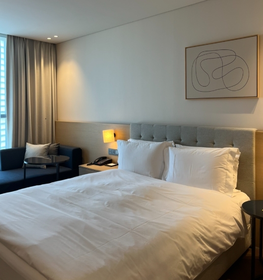 호텔에 도착하자마자 느껴졌던 첫인상은 깔끔함과 세련됨이었습니다. 외관은 고급스러우면서도 부담스럽지 않은 분위기를 풍기고 있었고, 입구에 들어서자마자 맞아주는 도어맨의 친절한 인사에 기분이 좋아졌어요.