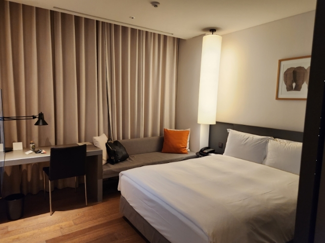 입구에 들어서자마자 바로 느껴지는 신라스테이 특유의 모던함은 고급스럽기보다는 실용적이고 실속 있는 느낌이 더 강했습니다. 대형 호텔처럼 화려하진 않지만, 딱 필요한 것들이 깔끔하게 갖춰져 있어 "이거면 충분하다"는 인상을 받았어요.