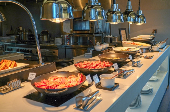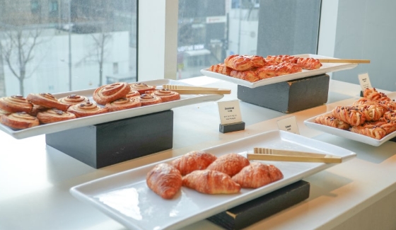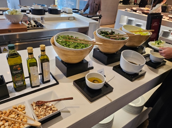양식 코너에는 샐러드, 시리얼, 우유, 요거트, 다양한 빵과 크로와상, 그리고 스크램블에그, 베이컨, 소시지 같은 기본적인 서양식 조식 메뉴가 고르게 준비돼 있었어요.