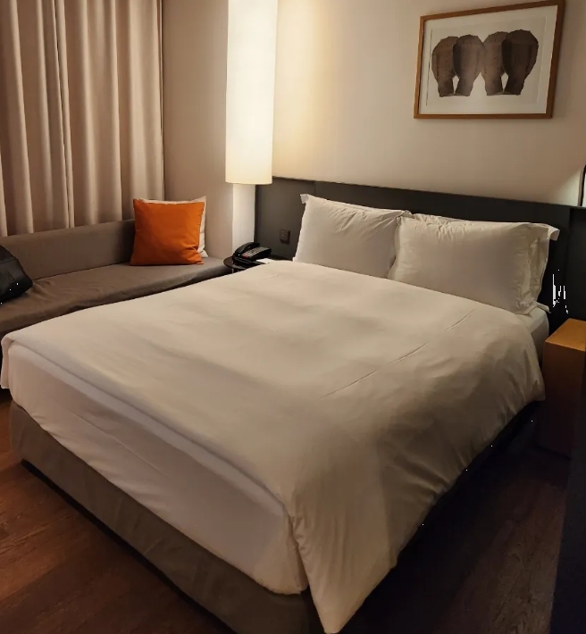 무엇보다 침구가 푹신하고 깨끗해서 숙면을 취할 수 있었어요. 전반적으로 깔끔하고 모던한 인테리어가 편안함을 더해주는 느낌이었습니다.