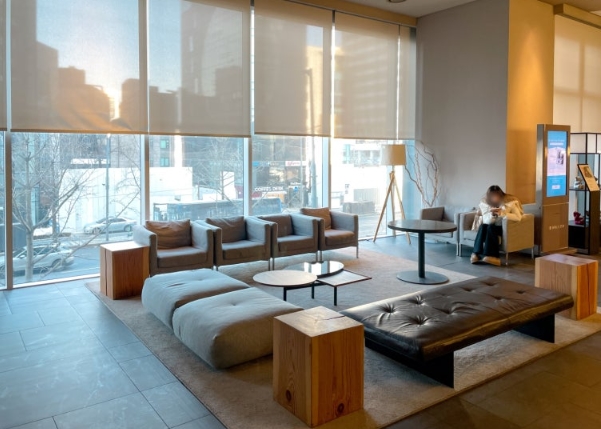 로비 공간은 생각보다 크진 않았지만, 필요한 기능을 잘 갖추고 있었어요. 체크인은 무인 키오스크와 직원 대응 두 가지 방식 모두 가능했고, 대기 시간이 거의 없어 매우 만족스러웠습니다.